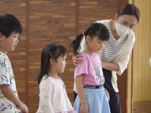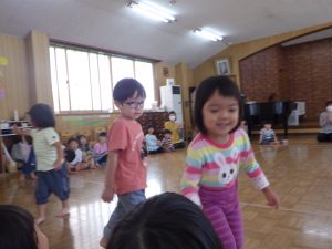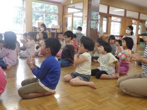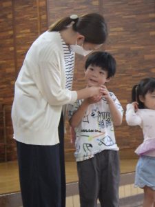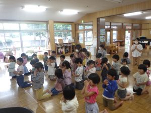 お祈りの後はお歌に合わせてお友達にインタビュータイム🕑