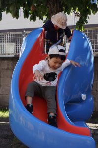 お兄さんお姉さんがいないのでいつもより広く感じる幼稚園を探検することに♪