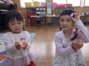 今日はおひさま組・ちゅうりっぷ組が何やらせっせと型抜き中✋