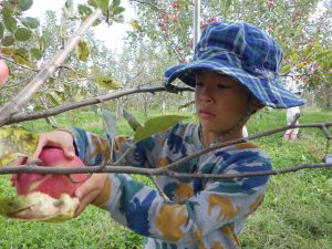 楽しみにしていた夢りんごファームでのりんご狩り。