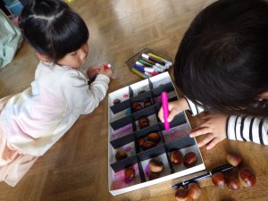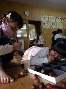 栗の実がコロコロ散らばっている中、