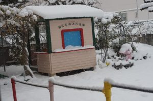 12月らしい雪の日、3人のお友達のお誕生をお祝いしました。
