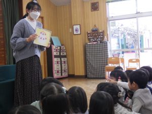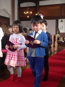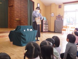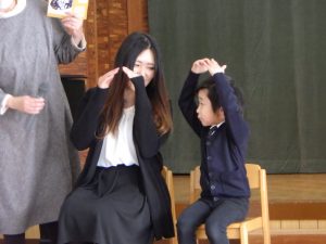 幼稚園では大好きなおうちの人とお友達に囲まれてのお祝いです。