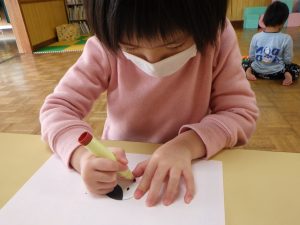 おひさまさんはマーカーを手に真剣なお顔…