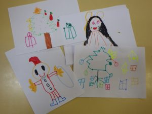 可愛い絵がたくさん😊クリスマスの絵を描いていたんだね。