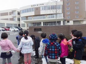 もう少しで1年生になるほし組さん☆大成小学校を見学しに行きました。1年生になったら学校にもこうして歩いて行くんだね。