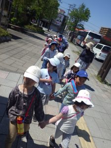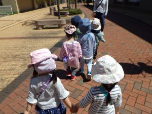 お友達としっかり手をつないで、てくてく