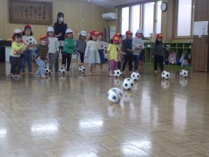ちゅうりっぷ組さんは、初めてのサッカー教室にワクワク・ドキドキ!