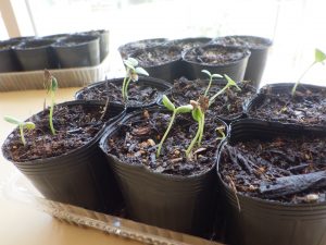 先日子ども達が蒔いた種が小さな目を出しています。