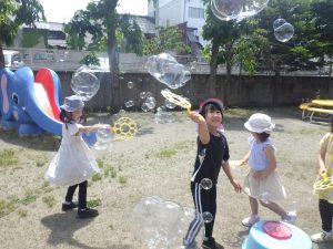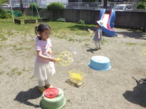 シャボン玉も風にのって嬉しそう