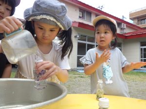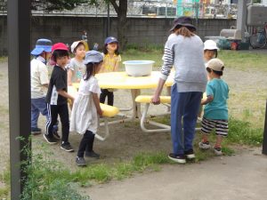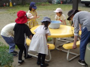 園庭にはお水が登場していました