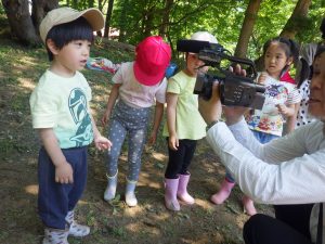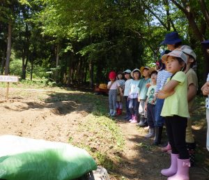 幼稚園の畑にはミニトマトやはつか大根を植えたほし組さん。