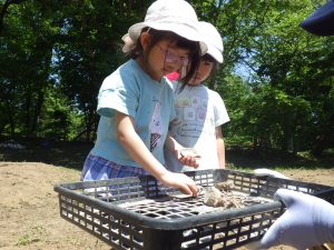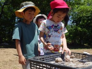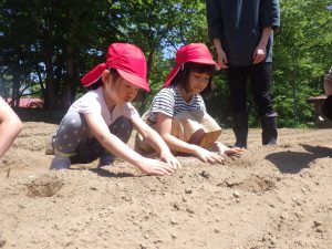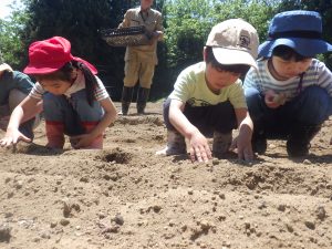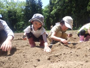 穴においもを入れたら、そっと土をかぶせてあげます。