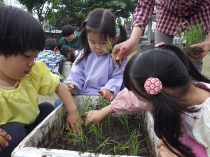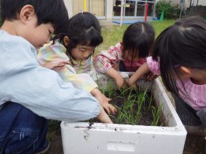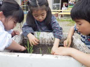 ほし組さんはお天気を気にしながらも田植えをしましたよ