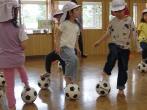 今日のサッカー教室はホールでやりましたよ