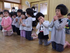 今日は、おひさまさんとちゅうりっぷさんと一緒にお祈りをしましたよ。