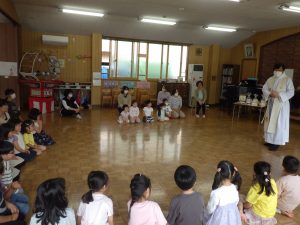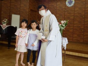 司祭様と一緒にお祈りをしました