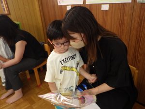 子どもたちから「がんばれー!」と応援を受け、みんあ真剣です!釣れそうで、釣れなくて…🐟でも、お家の方も大漁‼