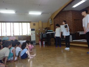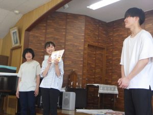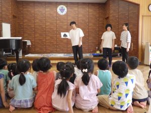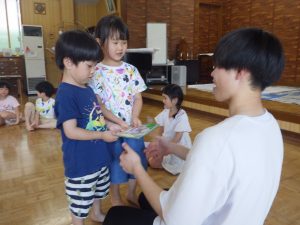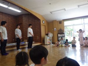 明日で実習の先生ともお別れです。みんなで実習の先生達にありがとうをしました。