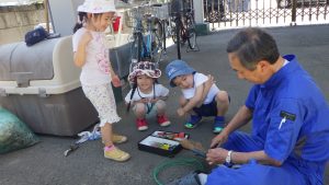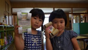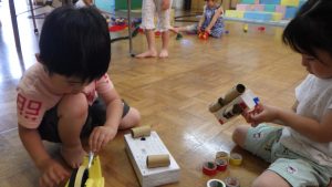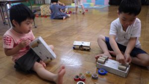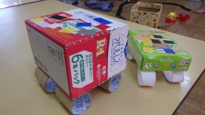 テープを切ったり、タイヤが取れないように貼ったり、指先を器用に使っての製作も上手になってきたね😊