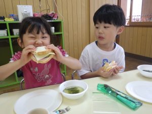 自分で作ったサンドイッチはおいしいね