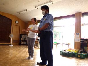みんなで集まって静かに先生のお話を聞いていると、