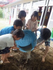みんなで力を合わせてお水を運び、