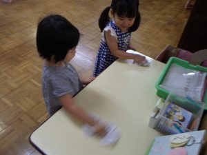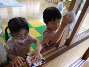 テーブルや窓枠もふきふきふき…