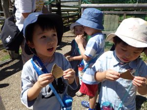 子ども達がおやつを手にもつと