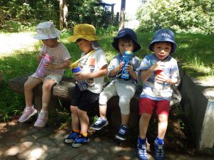 子ども達がおやつを手にもつと