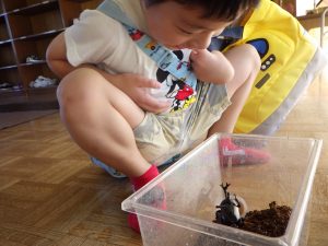 カブトムシのごうくんに「おはよー」をして、今日も1日がスタート!