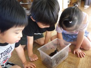 カブトムシのごうくんに「おはよー」をして、今日も1日がスタート!