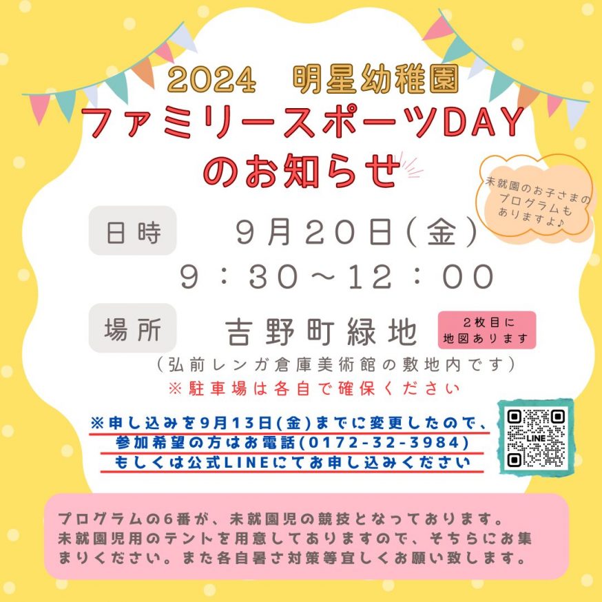 参加希望の方は、今週の金曜日(9月13日)までに電話もしくは子育て支援専用公式LINEにお申し込みください😊