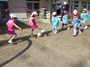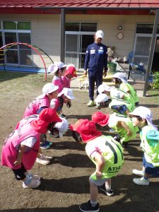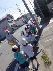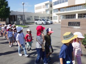 今日の避難訓練は、避難場所である大成小学校までみんなで歩きました!