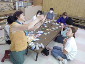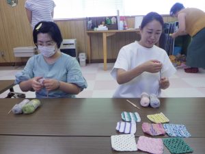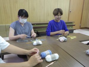 保護者講座もみなさん夢中になりながら、『編み物コースター』を作っていました。
