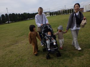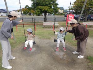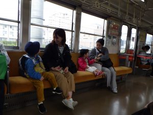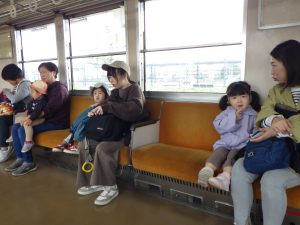 今日の子育て支援はお昼ごはんを持って、電車に乗って平川中央公園までおでかけ~