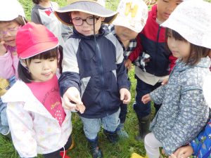 自分でどのりんごを取るのか決め、届かない所は先生に抱っこしてもらいながら、『弘前ふじ』と『シナノスイート』の2種類を収穫しました🍎