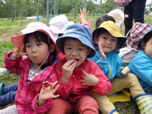 「せんせい、おかわりー!」とおいしいりんごをたくさん食べてきましたよ😊