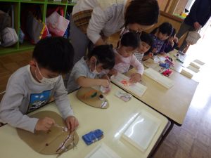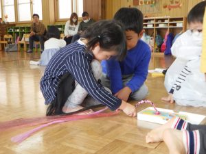 難しかったり困った時は、「せんせい、てつだってー。」と少し先生に手伝ってもらいながら、