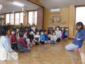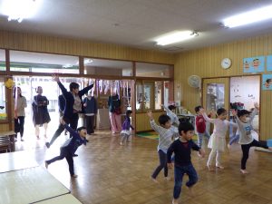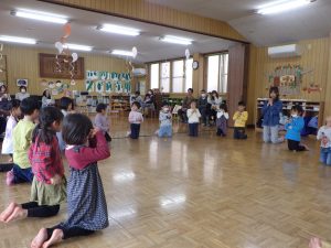 おひさま組さんは、体操をしてお祈りをしてから、