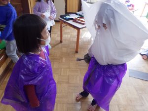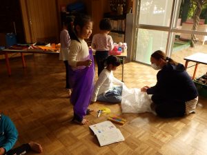 子どもたちは、何の準備をしているのか興味津々!