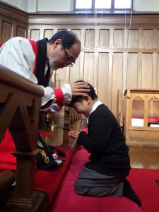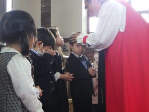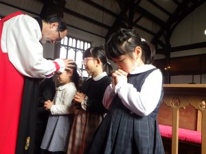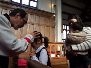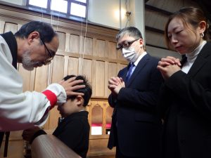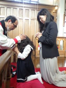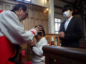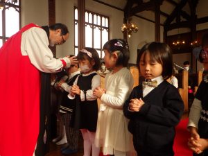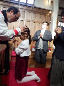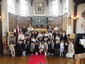 お誕生児一人ずつ主教様に祝福して頂きましたよ😊