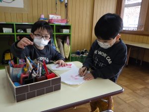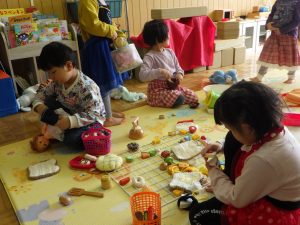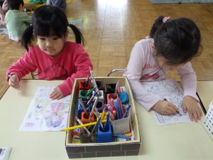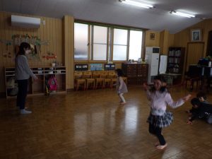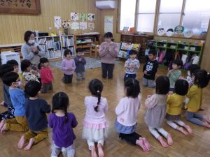 おひさま組さん・ちゅうりっぷ組さんは、礼拝をしたり少しお外にもでたり…