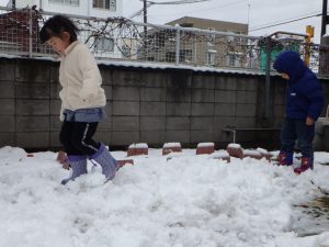 「ゆきだぁ~❄」「つめたーい!」と大喜び!