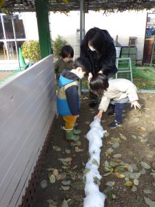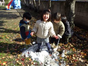 雪を見つけて大喜び