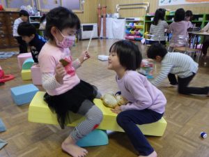 お友だちと一緒に遊ぶと楽しいもいぱいになるね!