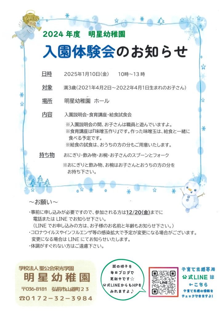 ~入園体験会のお知らせ~