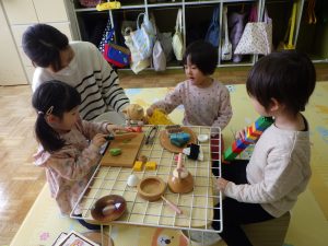 大雪の中、子ども達が元気に登園してきてくれましたよ。お正月の遊びやままごと、将棋、ぬりえなどなど好きな遊びをいっぱい楽しみました♫
