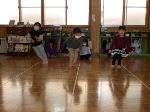 「がんばってー!」と心配そうに応援してお友だち🎵