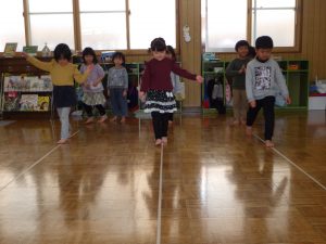 白い線の上を落ちないように、線上歩行のチャレンジ!!